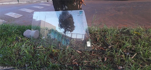 “Vende-se parabrisa de carro. Interessados procurar em canteiro central da av. Goioerê. É só ir olhando que você acha. Está encostado numa árvore”.