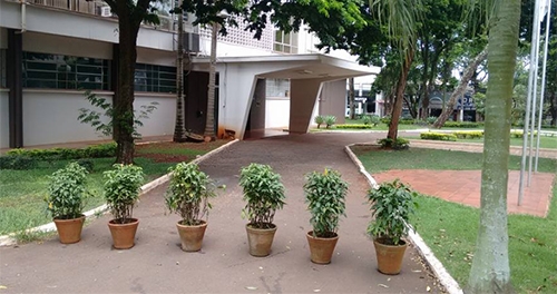 Acabou a regalia de estacionar carros em frente a prefeitura (dentro do pátio). Numa das entradas foi passada a corrente e, na outra, vasos com plantas foram colocados para impedir a passagem de qualquer carro. O estacionamento do Paço Municipal, todo mundo sabe, fica nos fundos, mas muita gente vinha utilizando a frente também, o que não ficava muito legal. Acabou a festa.