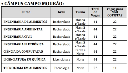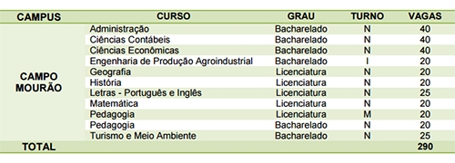São 4.460 vagas, sendo 286 no câmpus de Campo Mourão.