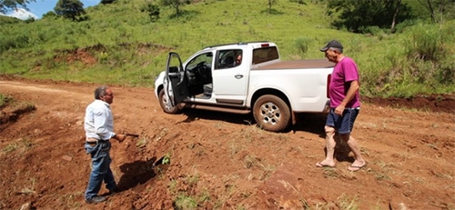 Em Campina da Lagoa, não é apenas o posto de saúde que recebe visita fora de hora do prefeito Milton Luiz Alves. No fim de semana ele saiu para conferir o trabalho de conservação de estradas rurais. Foi de chinelo de dedo e calção mesmo. Ao ver que um carreador de uma estrada não tinha sido feito, não pensou duas vezes e mandou a equipe responsável voltar ao local para concluir o serviço.