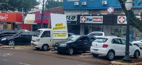 Fiscais da prefeitura percorreram na semana passada as três avenidas mais movimentadas de Campo Mourão e retiraram placas e faixas que encontraram pelos canteiros centrais e calçadas. Agora, olha só a placa que apareceu nesta quinta-feira na av. Capitão Índio Bandeira. E como está em cima de uma camionete, não pode ser retirada. Viu só, jeitinho mourãoense...