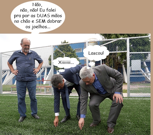 Olha aí mais um clic de segunda-feira, quando o secretário de Estado Douglas Fabrício (Esporte e Turismo) foi apresentar ao governador Beto Richa como ficarão as quadras do projeto Arena Multiuso. A grama é sintética, feita de borracha de pneu reciclado. Cada campo retira do meio ambiente cerca de 33 mil pneus velhos. Hummmmm...