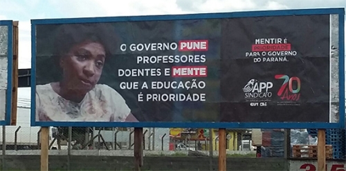 A APP/Sindicato está divulgando campanha publicitária em que acusa o governo do Estado de mentir ao divulgar que a educação é prioridade no Paraná. Outdoors com essa campanha já foram instalados em Campo Mourão.