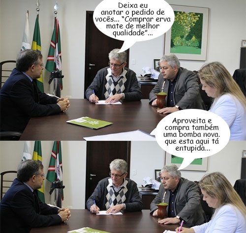 Os cliques são da semana passada, quando o prefeito Tauillo Tezelli foi a Curitiba levar projetos em busca da viabilização de recursos. Tudo acompanhado pelo secretário de Estado Douglas Fabrício (Esporte e Turismo). Com o secretário Norberto Ortigara (Agricultura) não faltou um chimarrãozinho...