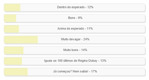 Completaram o pódio “Já começou? Nem sabia!”, com 17%, e “Muito bons”, com 14%.