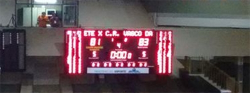 Placar eletrônico do Ginasião registra o resultado final de Campo Mouão e Pinheiros/SP, quarta-feira, pelo NBB. Os visitantes de São Paulo venceram por dois pontinhos – 83 a 81. Achou o erro? Na primeira linha do placar continua saindo que o adversário de Campo Mourão é o Vasco da Gama. Ih, já não chega o “trauma” das finais da Liga Ouro?...