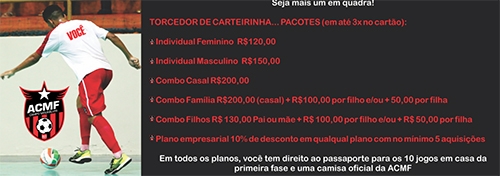 Se você está a fim de acompanhar a ACMF na disputa da Chave Ouro do Paranaense de Futsal, atenção! Saiu a promoção “Torcedor de Carteirinha”, que vende ingressos para os 10 jogos em Campo Mourão com opção de parcelamento e camisa oficial de brinde.