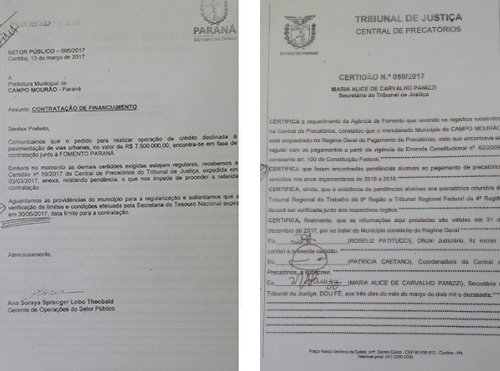 A certidão do TJ diz que existem pendências de 2015 e 2016. O Estado alerta a prefeitura que a situação precisa ser regularizada até o fim de maio. Caso contrário, o dinheiro não sai. O tão falado financiamento tinha sido pedido pela prefeitura em 2014.