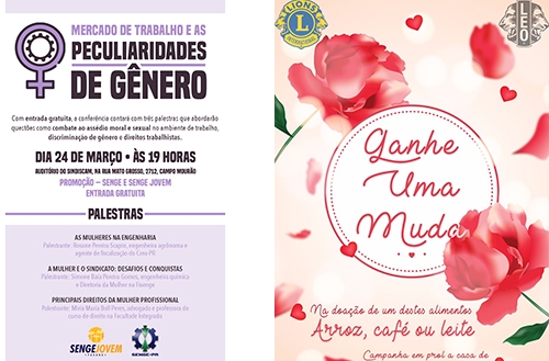 Flores por alimentos - O Leo Clube Senior de Campo Mourão estará neste sábado, das 13h `sas 17h, no supermercado Paraná Família fazendo arrecadação em prol da Casa de Apoio ao Doente de Câncer. Serão trocadas mudas de flores por pacotes de arroz, café ou leite.
