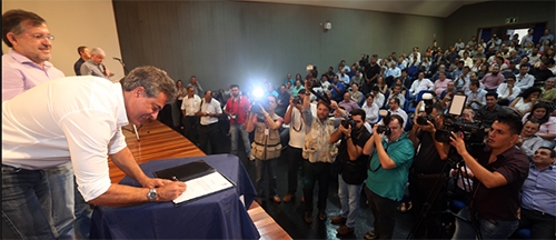 O clic é de sexta-feira, na Associação dos Agrônomos. Após assinar, enfim, a liberação do financiamento para Campo Mourão, o governador Beto Richa mostrou o documento para o público presente. O prefeito Tauillo Tezelli parece que deu uma de São Tomé e fixou o olhar pra ver se o papel estava assinado mesmo...