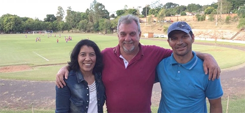 A primeira rodada do Amadorzão da Liga de Goioerê, no fim de semana, incluiu a vitória de Ubiratã sobre Rancho Alegre do Oeste por 3 a 2. De virada, com terceiro gol já nos acréscimos. Na torcida, os dois prefeitos – o anfitrião Baco Duarte e a visitante Suely Pereira. Na foto, também o presidente da Câmara de Rancho Alegre do Oeste, Amarildo José da Silva.