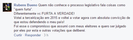 O deputado federal Rubens Bueno discutiu com internautas do Facebook por causa da lei da terceirização.