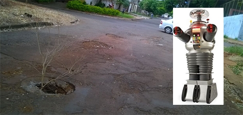 “Rua Hilda Menin Brezezinski, esquina com rua Benedito Lisboa de Souza, no jardim Alvorada. Próximo a escola, creche, posto de saúde há um buraco no caminho bem mais fundo que os outros”. Os sensores do robô não tiveram dúvidas e acionara o alerta de perigo.