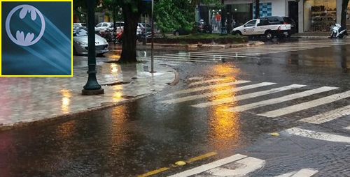 Bat-sinal acionado na esquina da av. Capitão Índio Bandeira com a rua Mato Grosso, que fica alagada a cada chuva. “Cadê a prefeitura?” pergunta Fraterno Maria Nunes.