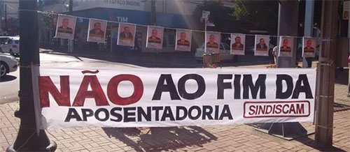 Fiscais da prefeitura estiveram no calçadão na manhã desta sexta-feira. Foram pedir a retirada de uma faixa que estava amarrada em duas placas de trânsito. Várias faixas foram colocadas no local em protesto contra os projetos de reforma da Previdência e de terceirização das empresas. Algumas estavam afixadas em floreiras e outras amarradas em postes. A faixa nas placas pedia que o deputado federal Rubens Bueno, do mesmo partido do prefeito Tauillo Tezelli (PPS), votasse contra o projeto da Previdência. Os manifestantes não retiraram a faixa.