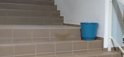 ...pinga aqui, pinga ali e pinga acolá. É a Câmara de Vereadores de Campo Mourão. Outro dia Boca Santa mostrou os “três baldinhos” que ficam no mezanino do plenário. Mas não é só lá, não. Esse balde aí da foto, por exemplo, foi flagrado nesta quinta-feira na escada que liga o plenário aos gabinetes dos vereadores. Como diria o cantor Sérgio Reis, “nessa casa tem goteira, pinga ni mim, pinga ni mim...”