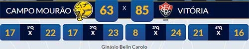 A estreia de Campo Mourão no playoff do NBB, nesta sexta-feira, no Ginasião terminou com trunfo tranquilo do Vitória: 85 a 63.