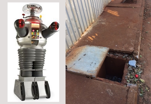 “Sanepar em obras na caixa de água do Lar Paraná, localizada na rua Dom Jaime Luiz Coelho, próximo à praça do Lar Paraná, simplesmente deixaram a tampa do esgoto aberta, colocando em risco quem caminha pelo local”. Devido ao perigo, os sensores do robô foram acionados.