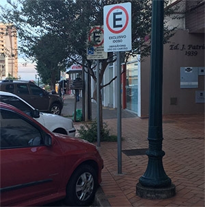 “Veículos usando vagas preferenciais (idosos e deficientes) sem as identificações obrigatórias. O flagra e de rua central de Campo Mourão, nesta segunda-feira”.