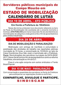 O Sindicato dos Servidores Municipais anunciou nesta quarta-feira o calendário de paralisações esporádicas.