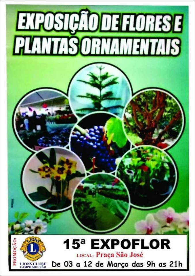 Começa nesta sexta-feira (9h), na praça São José, a 15ª Expoflor. A promoção é do Lions Club e seguirá até o próximo dia 12, sempre das 9h às 21h. Estarão à venda cerca de 100 espécies de plantas, entre flores, plantas exóticas, folhagens, árvores frutíferas e plantas decorativas. A produção vem de Holambra/SP. A Expoflor é beneficente e parte da renda vai para a Santa Casa, Lar Dona Jacira e Comunidade Terapêutica Redenção.