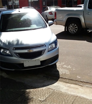 “Na rua Mato Grosso, centro de Campo Mourão, motorista deixa carro estacionado em frente a entrada de garagem”.