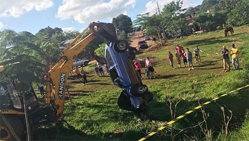 Um carro caiu, sábado à tarde, no canal do arrio Schimidt, que corta parte do perímetro urbano de Goioerê. O motorista não se machucou. Ele perdeu o controle quando fazia um contorno e foi direito para o córrego. O condutor não se machucou, mas o Gol ficou “embicado” no canal e precisou de uma pá-carregadeira para ser retirado.