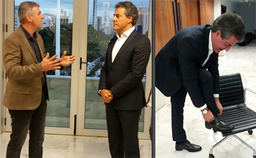 Olha quem esteve nesta terça-feira em Curitiba e bateu altos papos com o governador Beto Richa. Ele mesmo: o vereador Edilson Martins. Ele estava na capital para tratar de assuntos particulares, mas acabou indo ao Palácio Iguaçu e, quando viu, estava no gabinete. O presidente da Codapar, Tino Staniszewski, acompanhou a visita. Martins ficou tão à vontade que até fez até foto do governador amarrando o sapato.