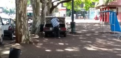 Está difícil arrumar vaga para estacionar no centro de Campo Mourão, não tá? Então, por que não dar aquela paradinha básica sobre a calçada? O clic é da semana passada, em frente a praça São José.