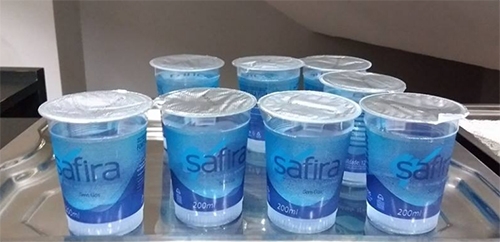 Lembra que Boca Santa publicou que nas sessões da Câmara os vereadores bebiam água mineral Safira e para o público era disponibilizado copos de água da Sanepar? Isso é coisa do passado. Nas sessões desta semana foi água Safira para o povo também.