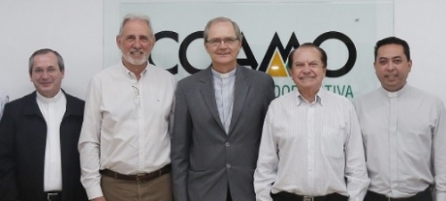 D. Bruno Elizeu Versari, bispo coadjutor de Campo Mourão, ao falar sobre a importância do cooperativismo, durante visita à sede da Coamo, quando se encontrou com presidente José Aroldo Gallassini; no início da semana.