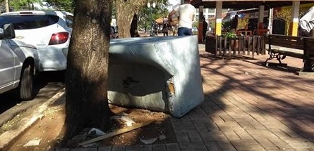 O sofá de dois lugares jogado há uma semana no calçadão, centrão de Campo Mourão, continua lá. Boca Santa mostrou o móvel na quarta-feira passada no "(Des) Classificados" e segue no mesmo lugarzinho. Está na av. Capitão Índio Bandeira, entre as ruas Brasil e Francisco Albuquerque, a pouco mais de 100 metros da prefeitura.