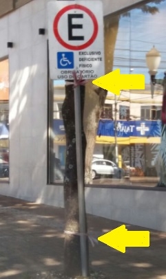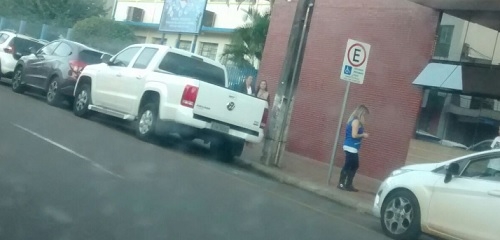 "Mau exemplo. Veículos, cujos condutores não são deficientes, param em vagas especiais, na hora de pegar os filhos na escola".