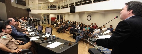 Coronel Samir Elias Ghea, comandante do 3.o Comando Regional da Polícia Militar, ao participar de audiência pública na Câmara de Campo Mourão que debateu a segurança na zona rural; quinta-feira.