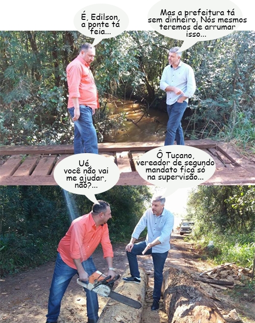 Os cliques são de estrada rural nas Barras, região do Alto Alegre. Os vereadores Edilson Martins e Tucano Ribeiro pediram a reconstrução de uma ponte e foram lá conferir o início dos dos trabalhos. Não faltou, é claro, é encenadinha para render balãozinho aqui na Boca...