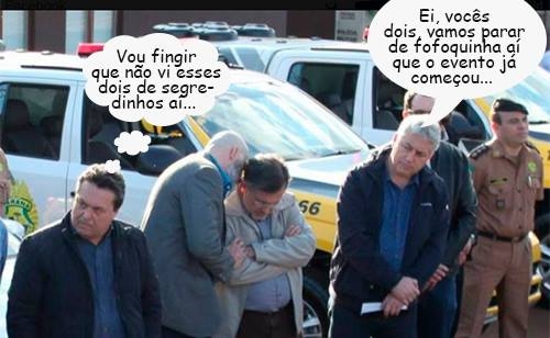 Olha aí mais um clic da solenidade de entrega de viaturas no 11.o BPM, semana passada. O delegado-chefe da 16.a SDP aproveitou o evento para colocar a conversa em dia com o prefeito Tauillo Tezelli. O deputado Márcio Nunes e o secretário de Estado Douglas Fabrício (Esporte e Turismo) também participaram do evento.