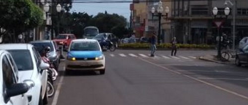 Carro para em fila dupla na rua Francisco Albuquerque, em frente à Câmara de Vereadores. Não pode. Ainda mais se é um veículo adesivado de prefeitura da região, com todo mundo vendo.