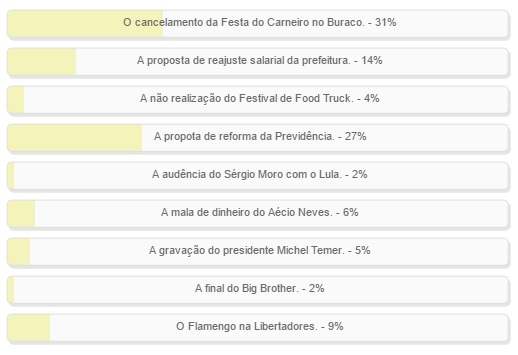 "O cancelamento da Festa do Carneiro no Buraco" foi a opção mais votada, com 31% dos votos.