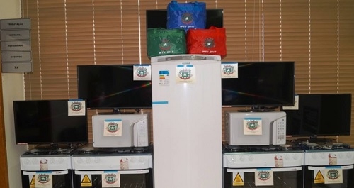 São uma geladeira, cinco televisores, quatro fogões e dois micro-ondas.