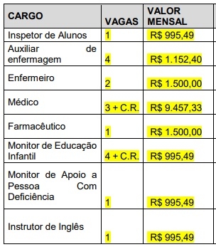 Os salários vão de R$ 995,49 a R$ 9.457,33 (veja quadro acima).