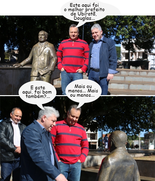 Em Ubiratã, o ex-prefeito Fábio D"Alécio levou o secretário de Estado Douglas Fabrício para conhecer as estátuas dos ex-prefeitos que foram colocadas em praça pública, Só os prefeitos mortos foram homenageados. Um deles é o pai de Fábio. Vadir D"Alécio. Outro é Tomaz Izidro de Lima, o "Tomaizão", que foi adversário dos D"Alécios.