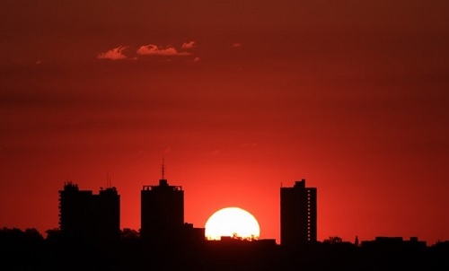 Por do sol em Campo Mourão nesta terça-feira, visto do anel viário. André Shimohiro
