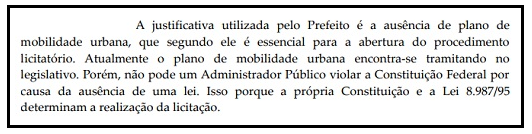 "(...) após aprovação, daremos continuidade com o edital de licitação do transporte coletivo", destaca o texto.