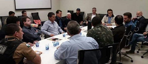 O deputado estadual Felipe Francischini esteve na Câmara de Campo Mourão nesta sexta-feira. Conversou com vereadores e com policiais civis e militares. Um dos assuntos em pauta foi o projeto de utilidade pública para a Associaçãoo de Tiro Esportivo de Campo Mourão. Felipe, que é filho do deputado federal Fernando Francischini, também visitou cidades da região.