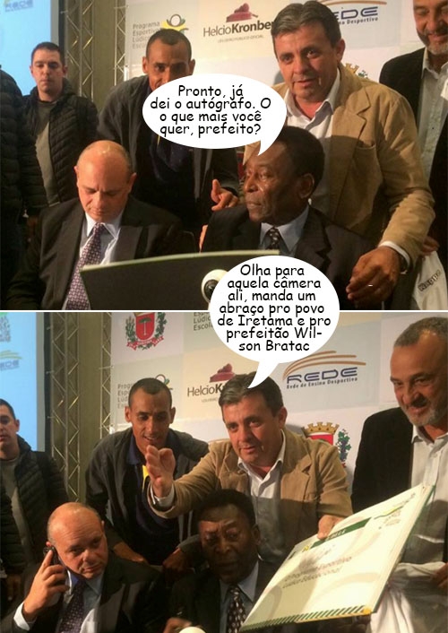 Assim como Carlos Caxão (Corumbataí do Sul), o prefeito de Iretama, Wilson Bratac também aproveitou o evento com Pelé, em Curitiba, para umas "fotinhas" básicas. Tudo publicado no Facebook, é claro. O "rei do futebol" esteve na capital paranaense para lançar porograma que usa recursos da Lei Pelé no contraturno escolar.