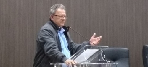 Sidnei Jardim (PPS), vereador en Campo Mourão, sobre o projeto que passou a permitir que a prefeitura doe áreas institucionais, o que pode viabilizar a permuta para ampliação do câmpus da UTFPR (a proibição estava prevista em lei de 2015); na sessão desta segunda-feira.