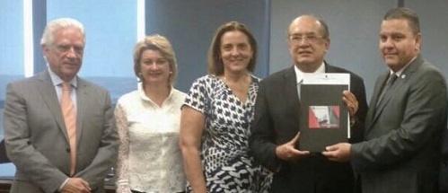 Foi entregue nesta quinta-feira ao presidente do TSE, ministro Gilmar Mendes, o relatório da proposta de rezoneamento eleitoral do Paraná. Com a proposta, 16 zonas do Estado serão extintas, ficando ainda 190. Nenhuma ZE da região acaba. Bem diferente da proposta original do TSE, que acaba com 83 zonas do Paraná, incluindo várias na região e uma de Campo Mourão. Entre os presentes, o deputado federal Rubens Bueno e a presidente da Comcam, Angela Kraus (Farol).