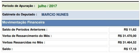 Saiu o relatório de julho das despesas dos gabinetes dos deputados estaduais do Paraná. O mourãoense Márcio Nunes fechou o período com R$ 31,4 mil, que é a cota mensal. Tanto que iniciou julho com R$ 11,62 no caixa e terminou com R$ 17,10. Os maiores gastos foram com divulgação (R$ 6,5 mil), serviços técnicos profissionais (R$ 5,9 mil) e combustíveis (R$ 5 mil). Os dados completos estão disponíveis no Portal da Transparência da Assembleia Legislativa.
