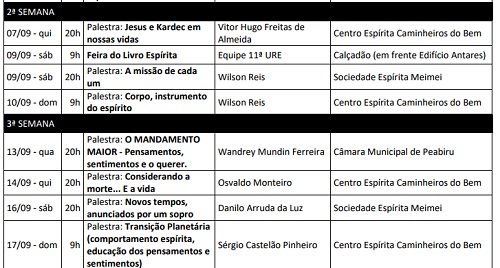 Começou no fim de semana a programação do 10º Mês Espírita de Campo Mourão.