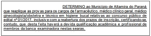 A prefeitura de Altamira do Paraná terá de reaplicar as provas do concurso público para candidatos de quatro cargos.
